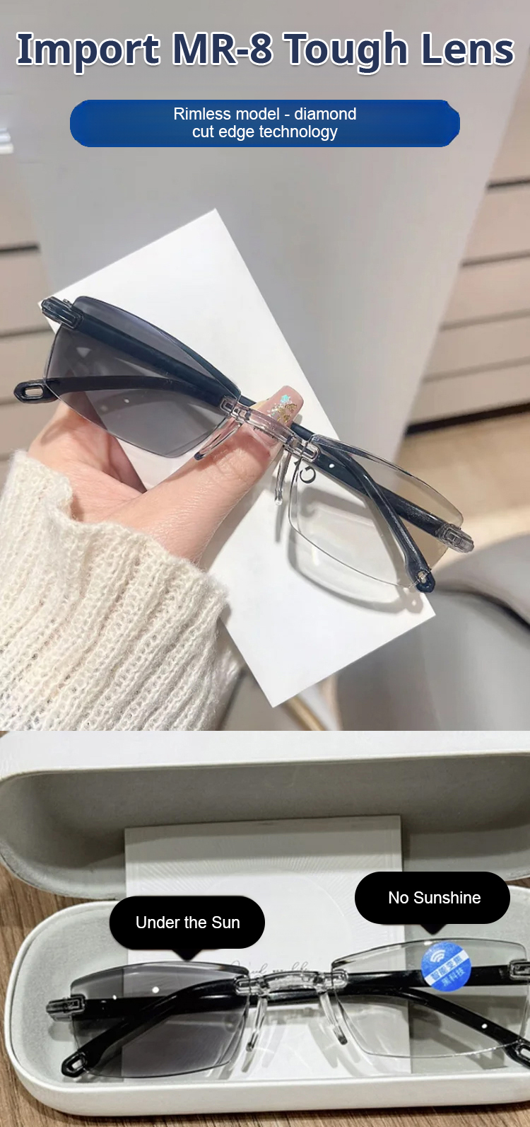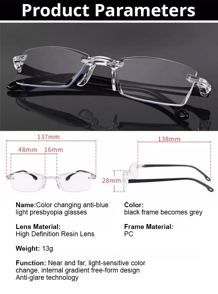 Color-changing anti-blue light presbyopia glasses